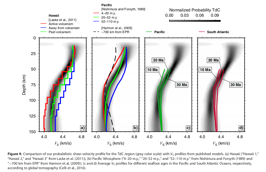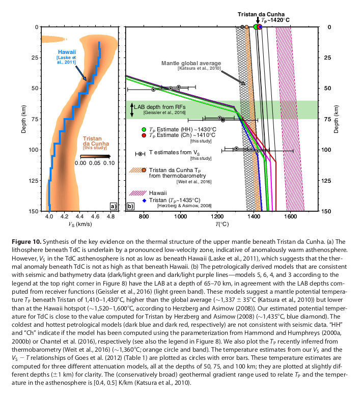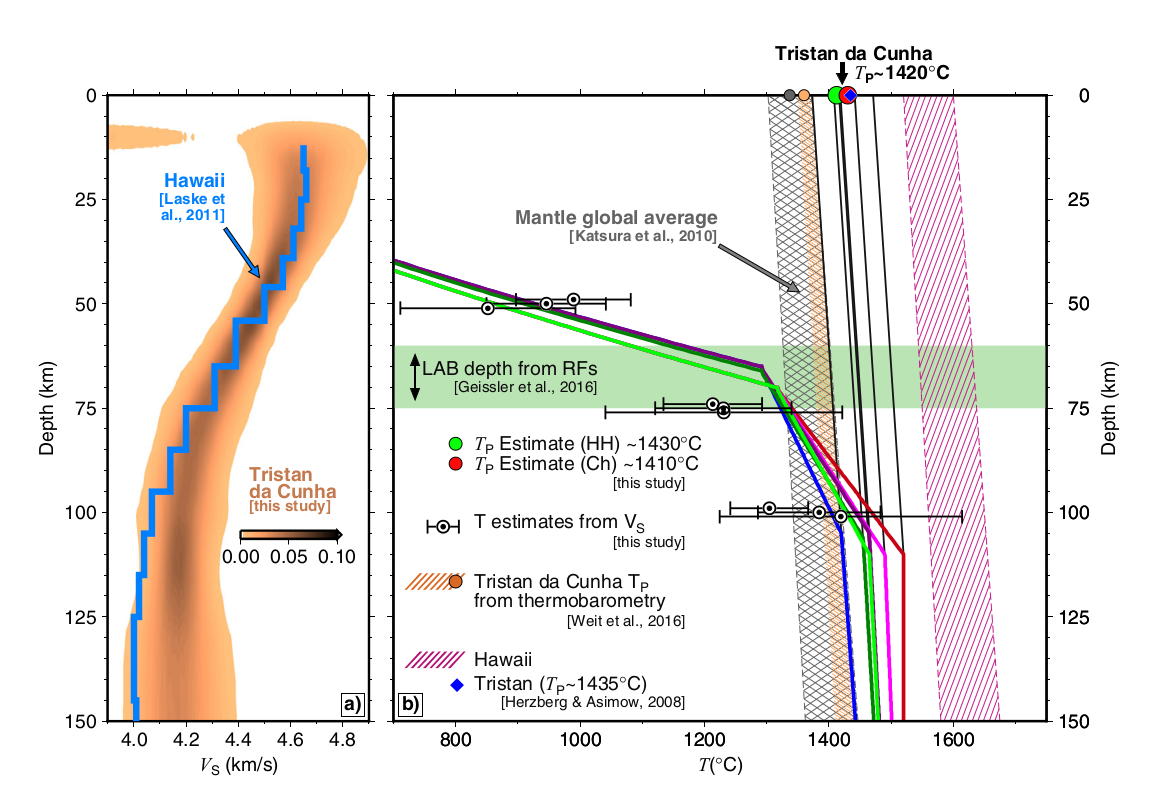 Bonadio, R., Geissler, W. H., Lebedev, S., Fullea, J., Ravenna, M., Celli, N. L., et al. (2018). Hot upper mantle beneath the Tristan da Cunha hotspot from probabilistic Rayleigh-wave inversion and petrological modeling. Geochemistry, Geophysics, Geosystems, 19, 1412–1428. https://doi.org/10.1002/2017GC007347