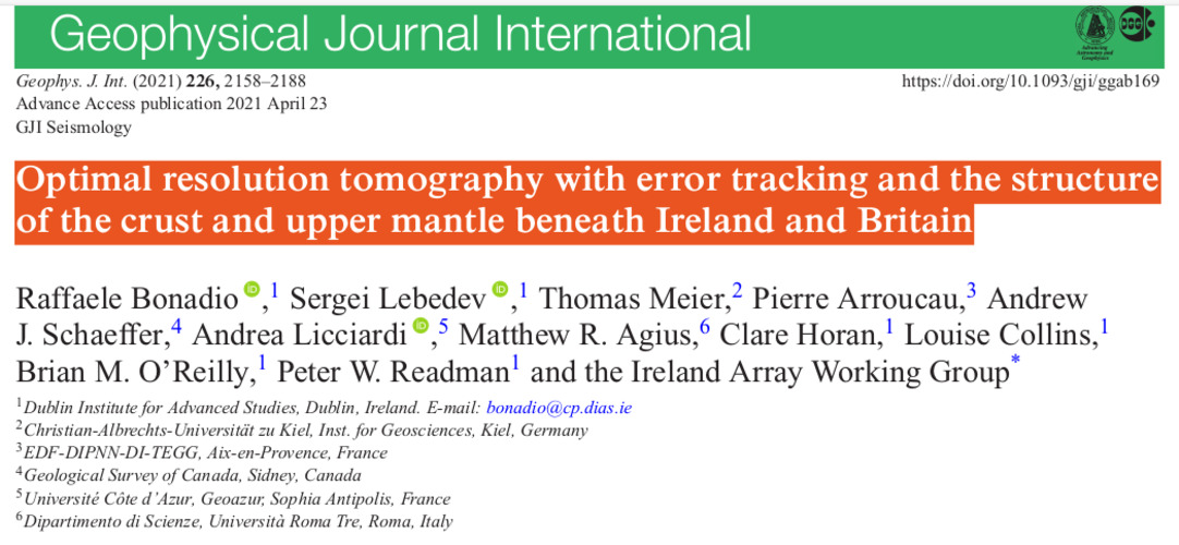 Raffaele Bonadio, Sergei Lebedev, Thomas Meier, Pierre Arroucau, Andrew J Schaeffer, Andrea Licciardi, Matthew R Agius, Clare Horan, Louise Collins, Brian M O’Reilly, Peter W Readman, Ireland Array Working Group, Optimal resolution tomography with error tracking and the structure of the crust and upper mantle beneath Ireland and Britain, Geophysical Journal International, Volume 226, Issue 3, September 2021, Pages 2158–2188, https://doi.org/10.1093/gji/ggab169